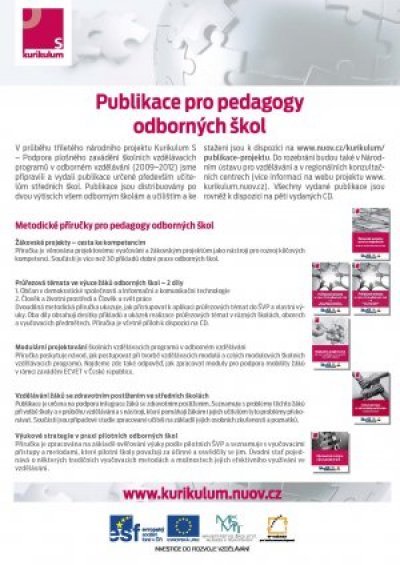 Stručný přehled Vás seznámí se všemi publikacemi vydanými a připravovanými v rámci projektu Kurikulum S, mezi nimiž najdete metodické příručky pro učitele odborných škol, sborníky příkladů dobré praxe i příspěvků z konferencí, informační brožury o sociálním partnerství odborných škol a další. Nově jsme vydali brožuru Vzdělávání žáků se zdravotním postižením v odborných školách a sborník Sociální partnerství očima zaměstnavatelů.